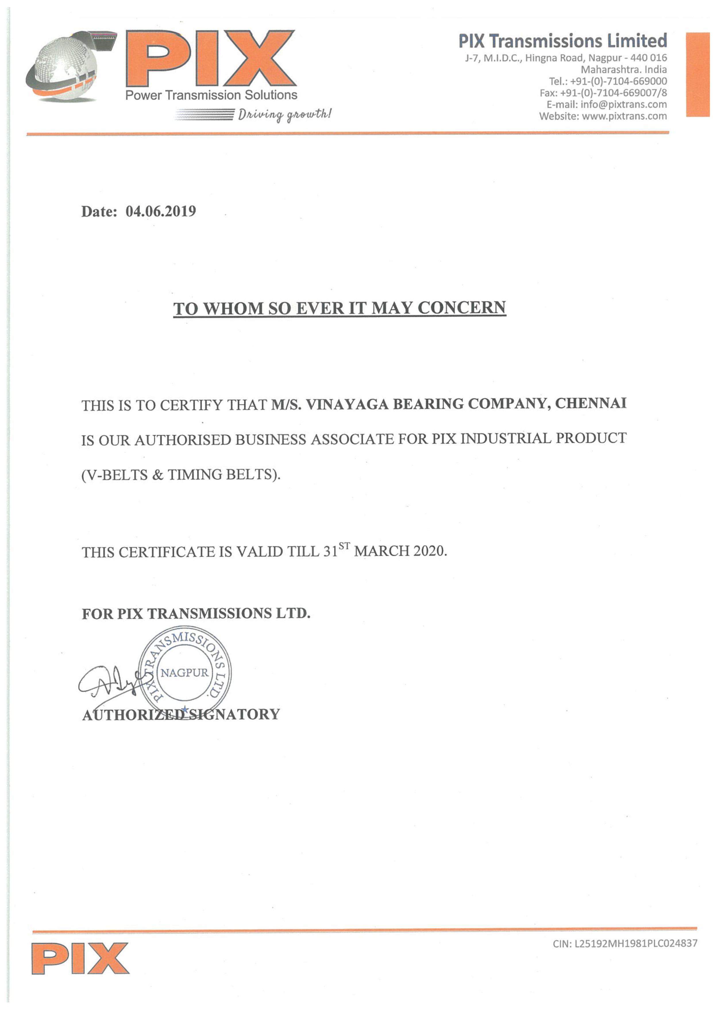 We are certified Bearing Distributors.