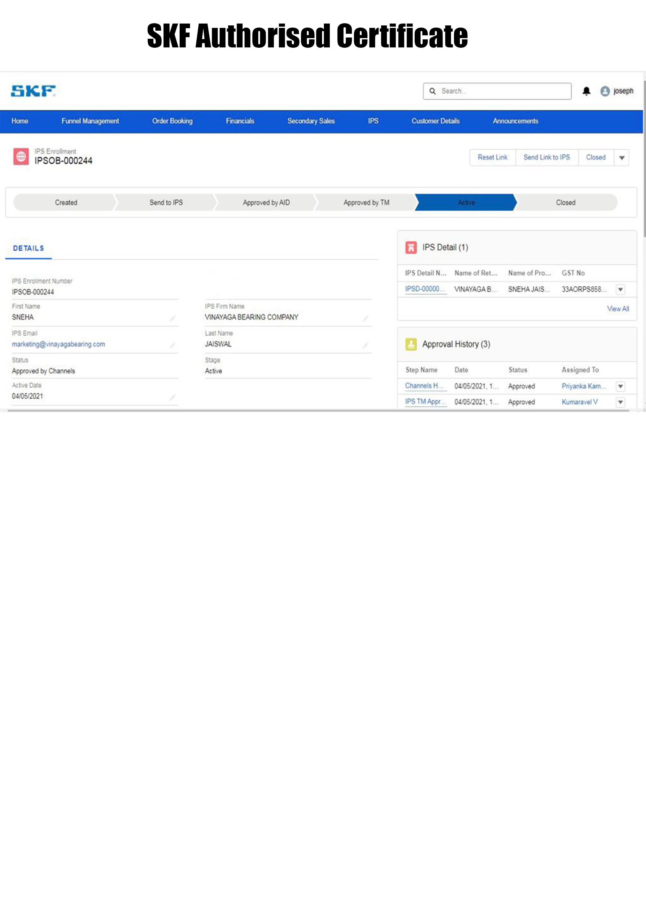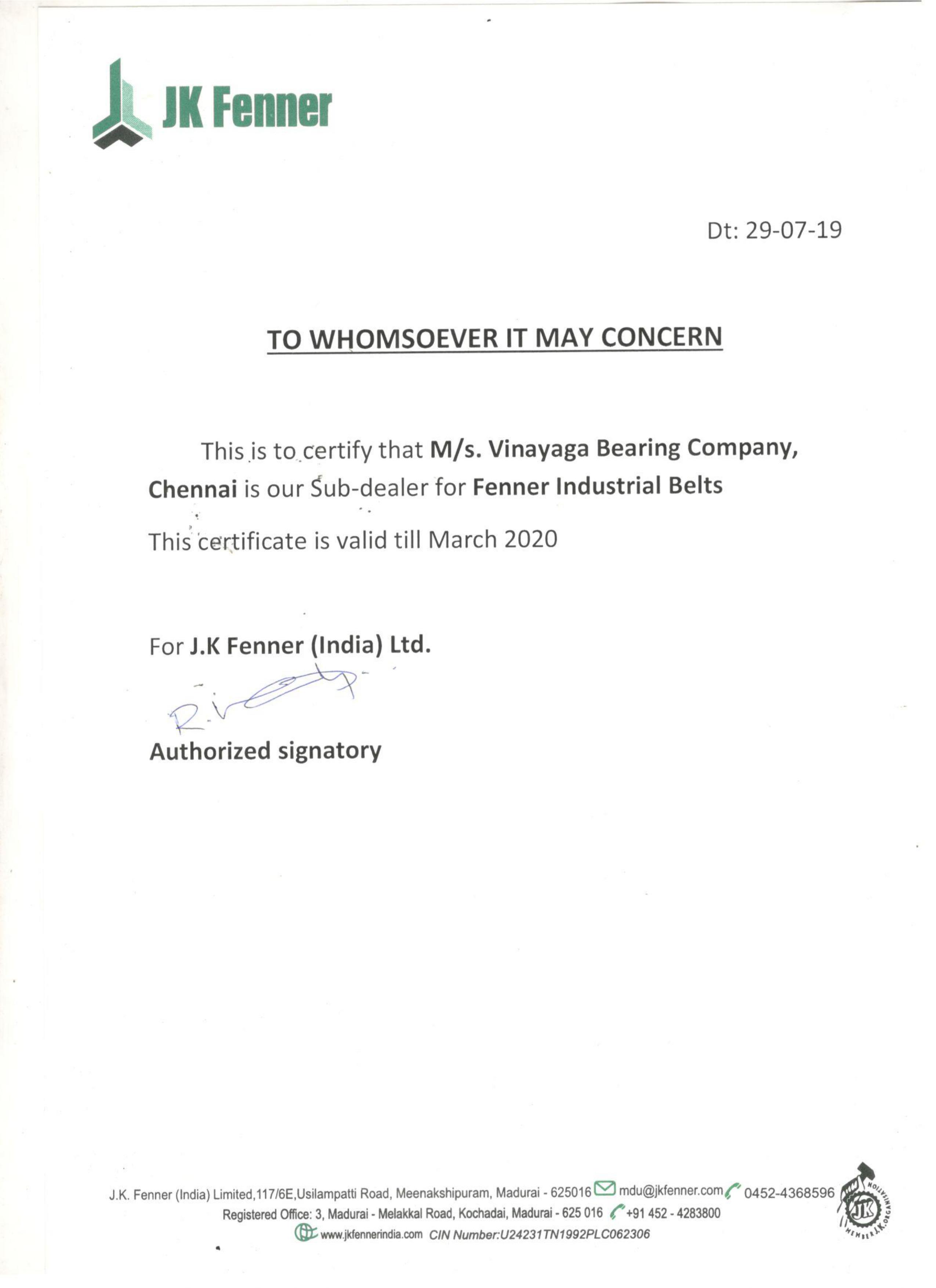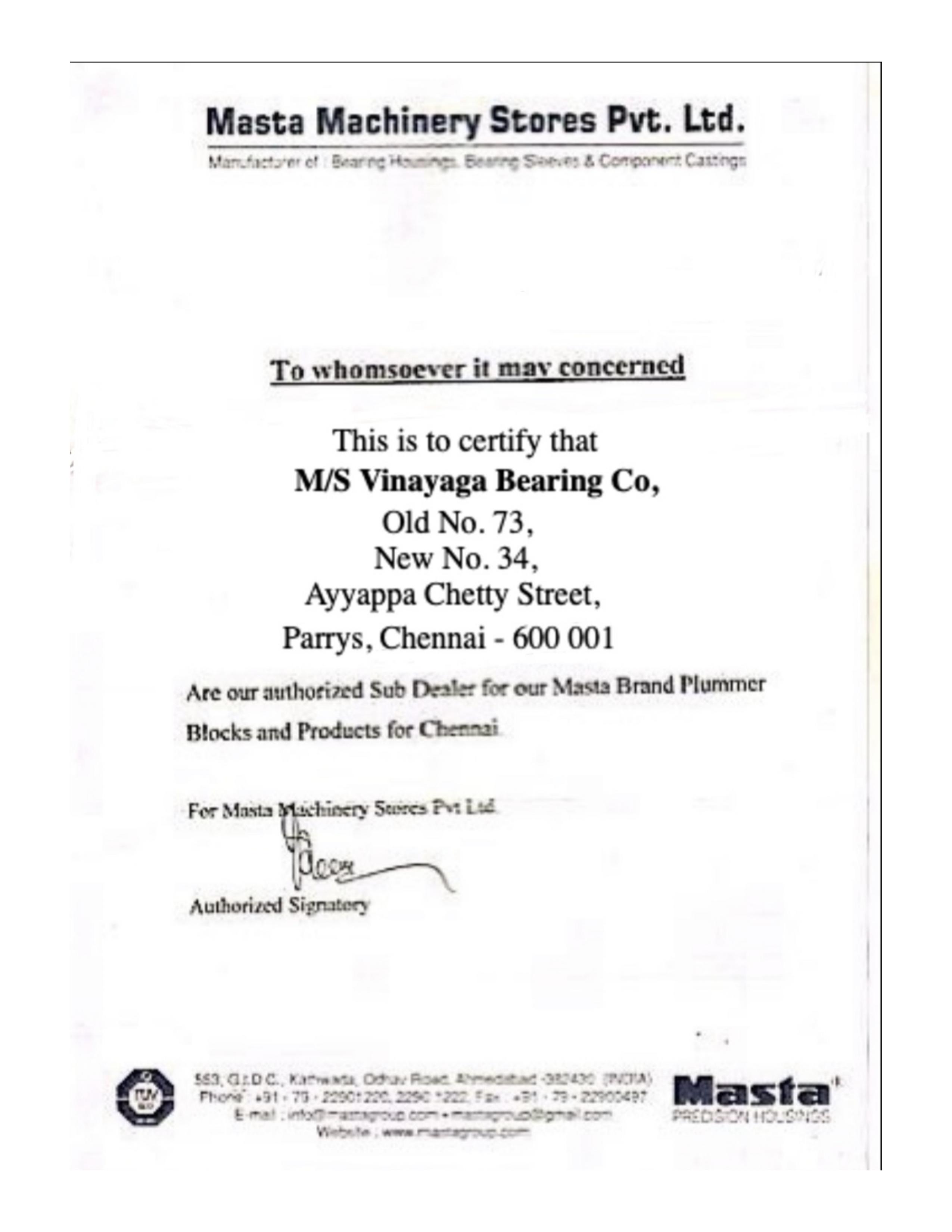 We are certified Bearing Distributors.